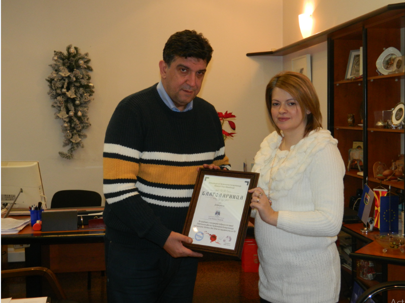 Претседателката на Асоцијацијата за пулмонална хипертензија ,,Момент Плус’’ Ѓургица Ќаева денес на градоначалникот на општина Гевгелија Сашо Поцков му оддаде Благодарница за финансиската помош за учество на настанот ,,5-ти Мај Светски ден на пулмоналната хипертензија’’.